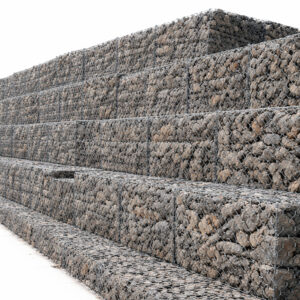Gabion is a wire mesh structure filled with stones, used for soil stabilization, erosion control, and retaining structures.